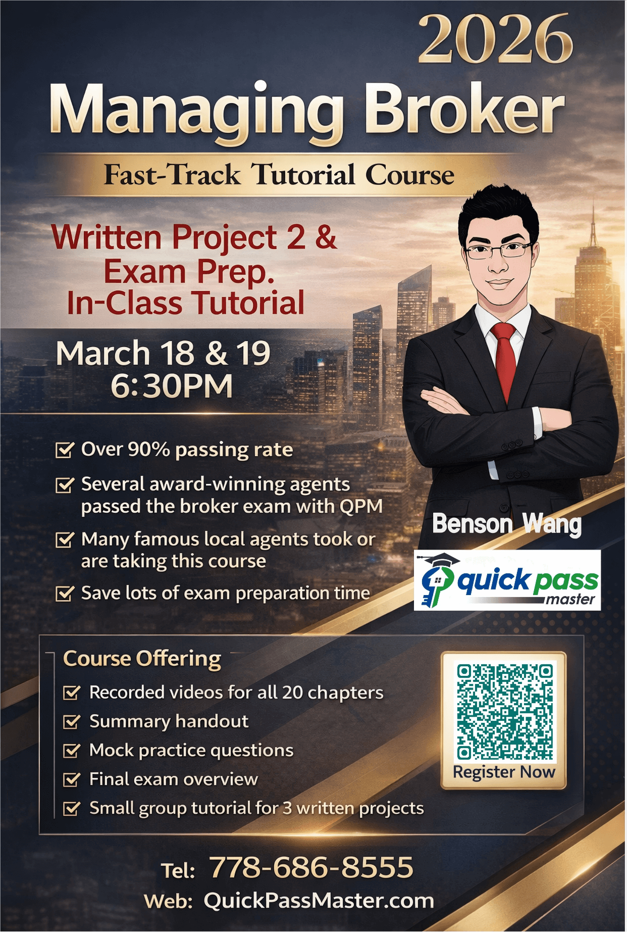 Quick Pass Master’s Broker’s Licensing Course helps students registered at the University of British Columbia’s Business School get their license by passing the exam. The course is mandatory for anyone wanting to be a managing broker.