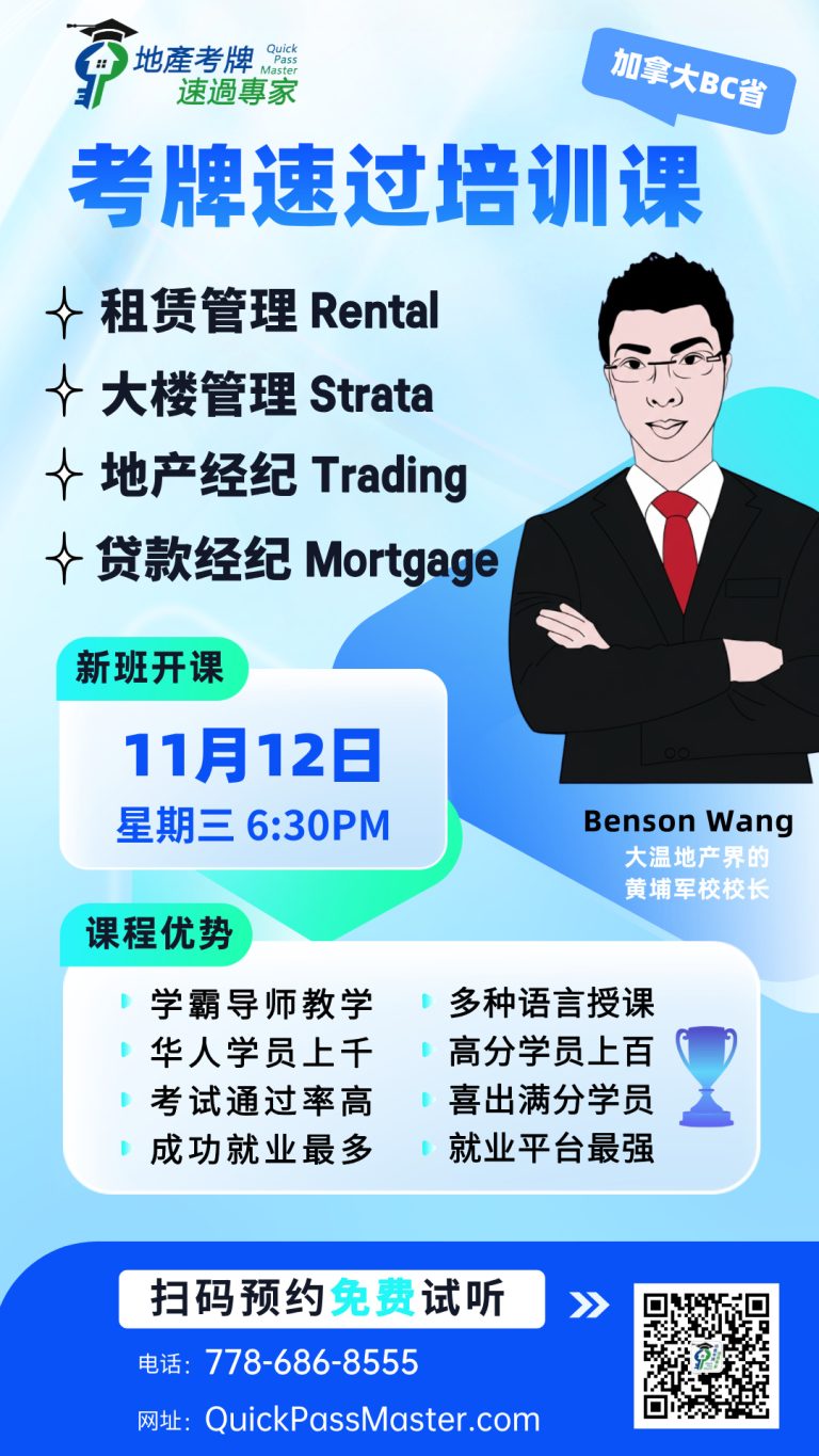 I highly recommend QuickMaster School for anyone preparing for their real estate licensing exam in BC. Teacher Benson has been in the real estate exam training industry for many years and consistently updates his knowledge base and teaching methods to stay current with industry changes. His training is especially helpful for second-language speakers like myself, making the licensing process much easier to navigate. The structured approach, clear explanations, and well-designed materials provide a strong foundation for exam success. Thanks to QuickMaster School, I was able to pass my exam with confidence!”