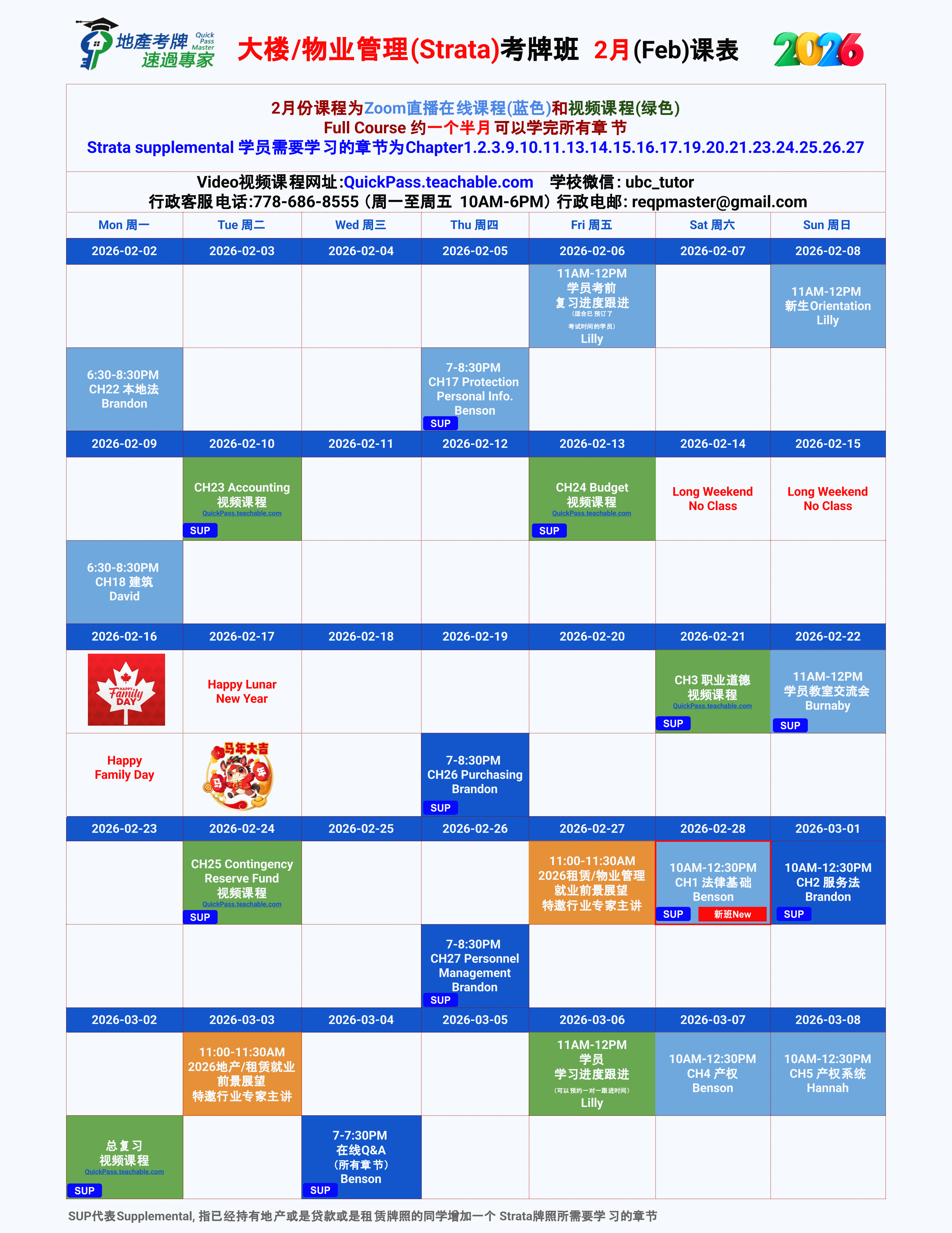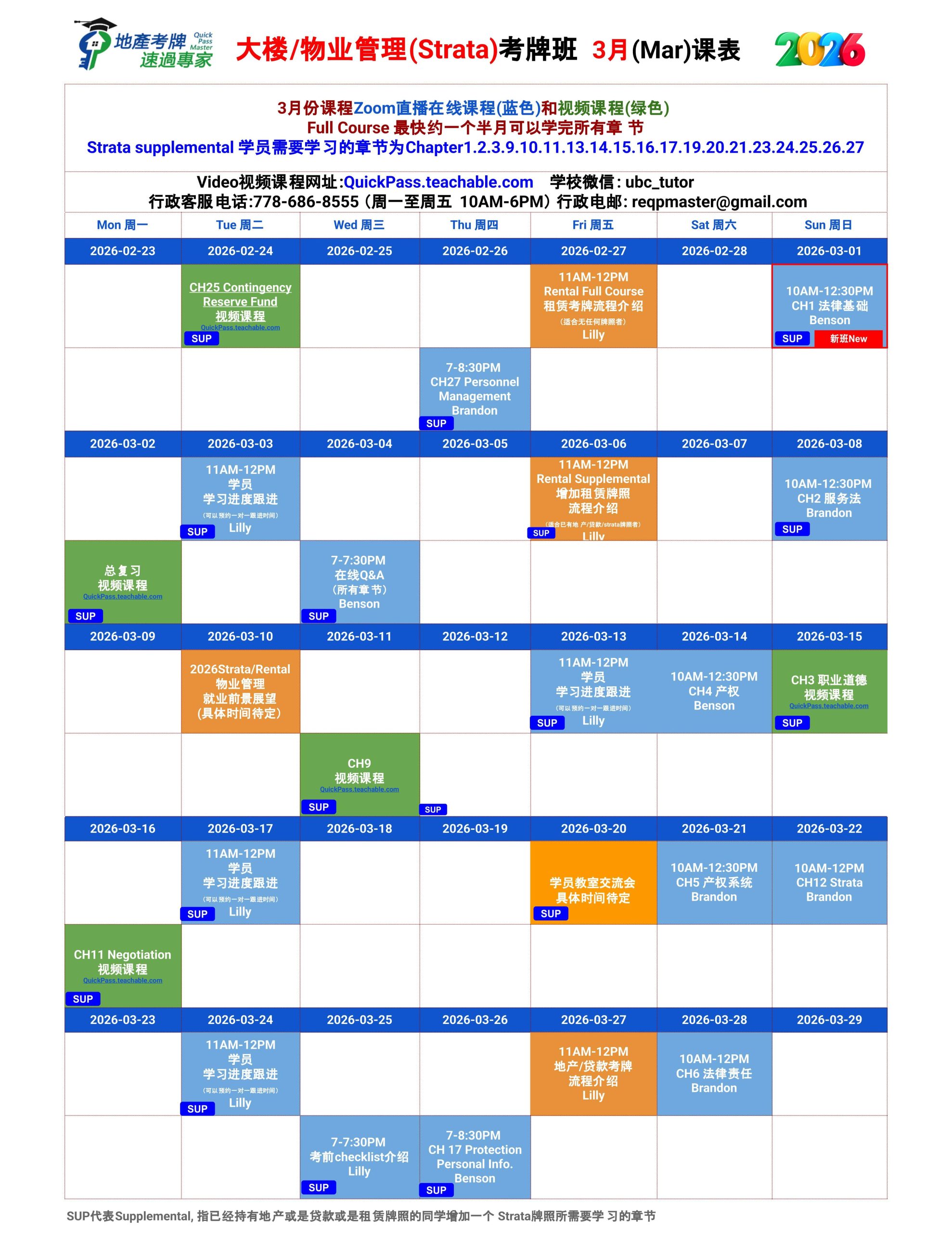 Strata物业课表