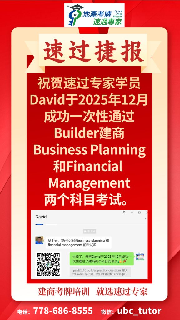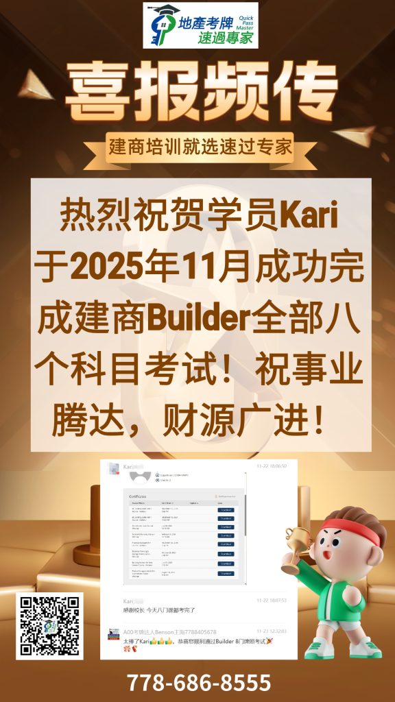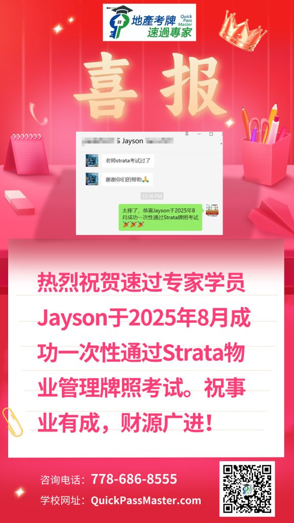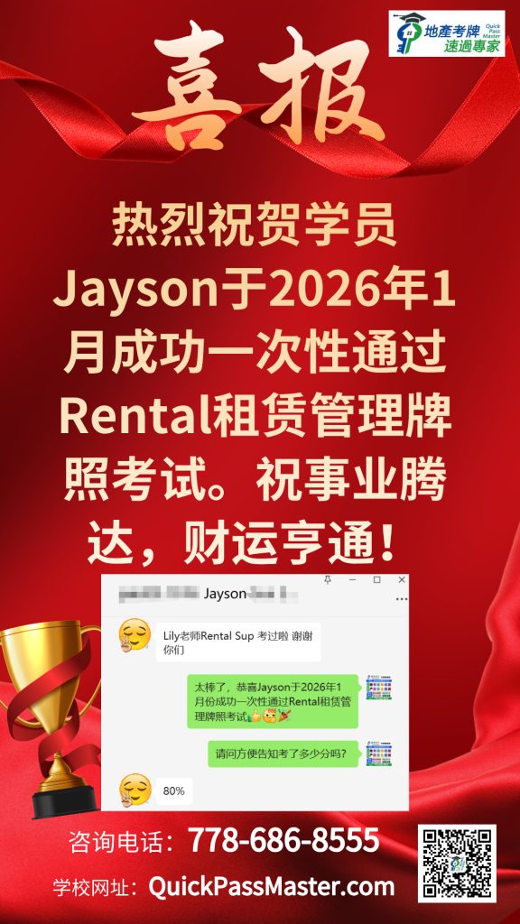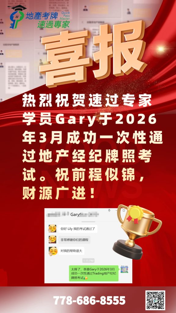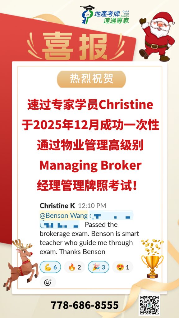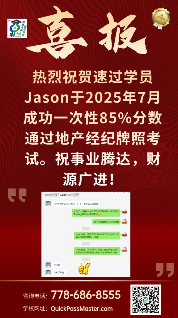 I highly recommend QuickMaster School for anyone preparing for their real estate licensing exam in BC. Teacher Benson has been in the real estate exam training industry for many years and consistently updates his knowledge base and teaching methods to stay current with industry changes. His training is especially helpful for second-language speakers like myself, making the licensing process much easier to navigate. The structured approach, clear explanations, and well-designed materials provide a strong foundation for exam success. Thanks to QuickMaster School, I was able to pass my exam with confidence!”