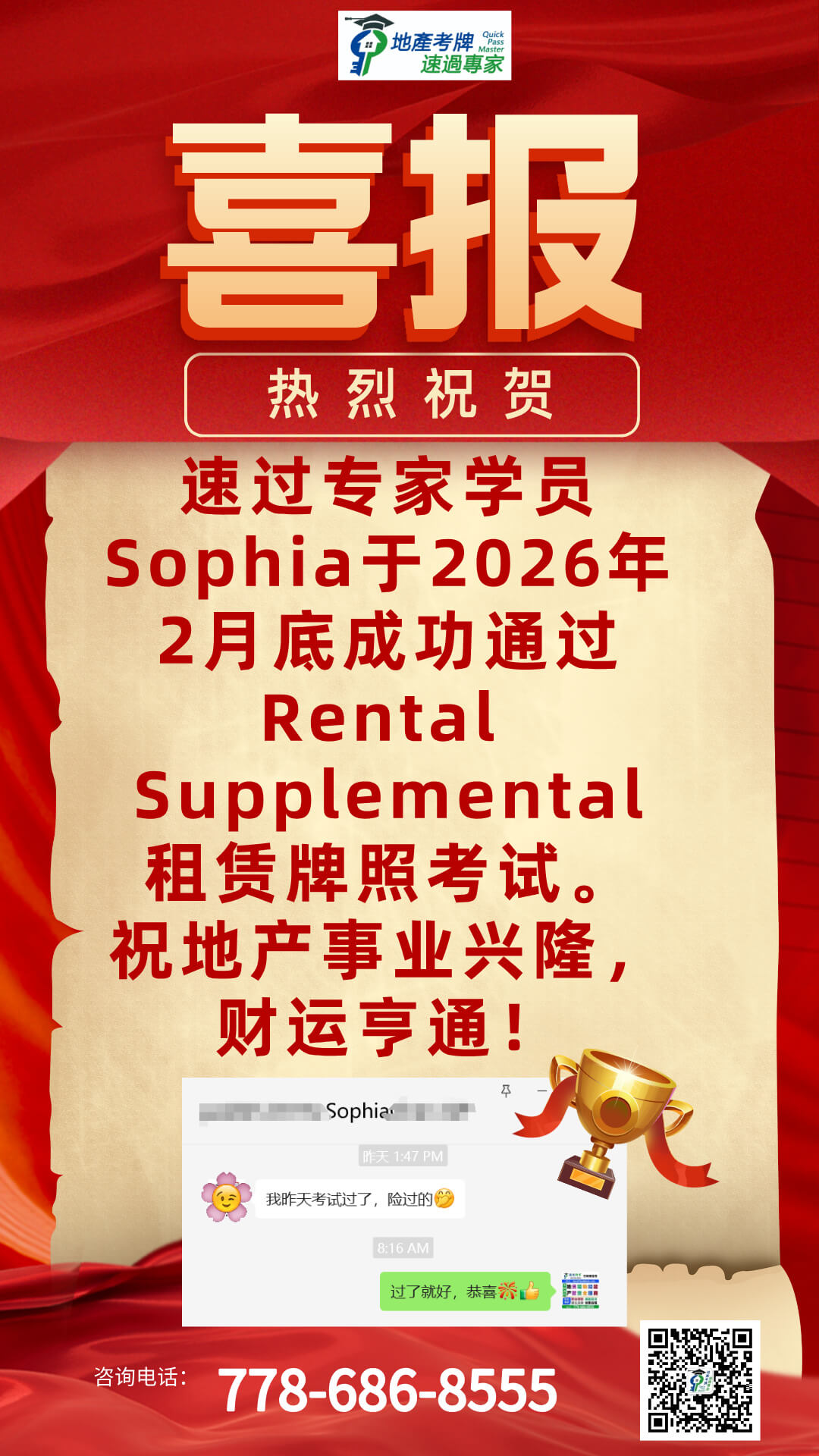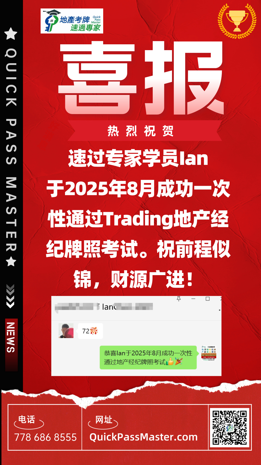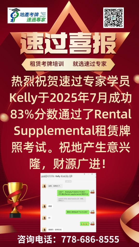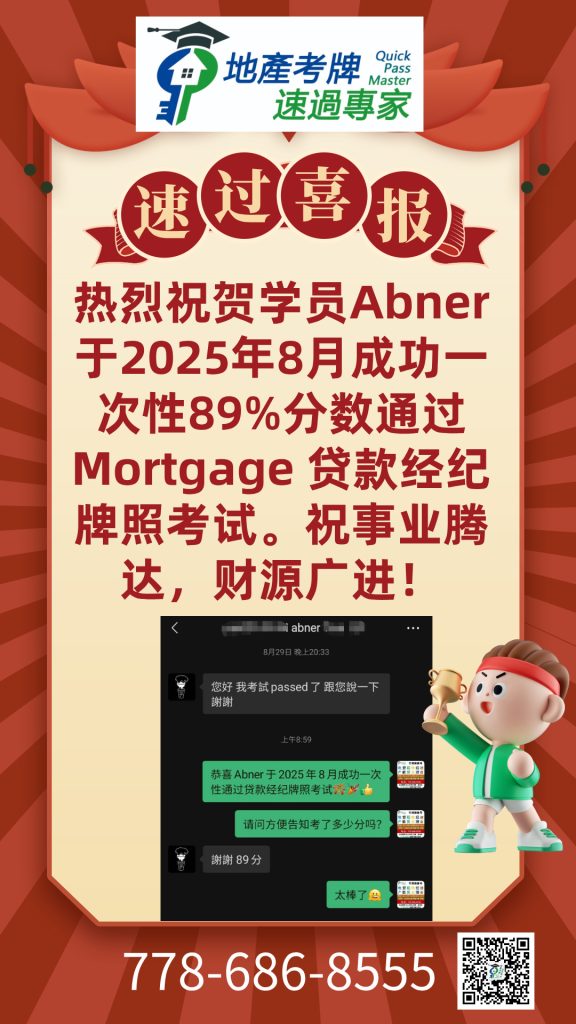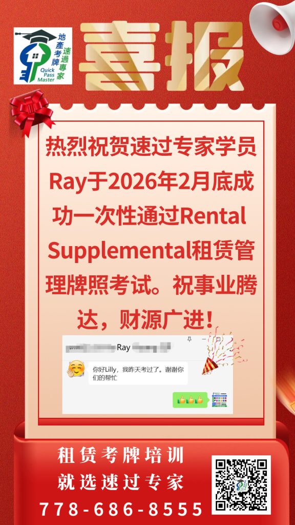 I highly recommend QuickMaster School for anyone preparing for their real estate licensing exam in BC. Teacher Benson has been in the real estate exam training industry for many years and consistently updates his knowledge base and teaching methods to stay current with industry changes. His training is especially helpful for second-language speakers like myself, making the licensing process much easier to navigate. The structured approach, clear explanations, and well-designed materials provide a strong foundation for exam success. Thanks to QuickMaster School, I was able to pass my exam with confidence!”